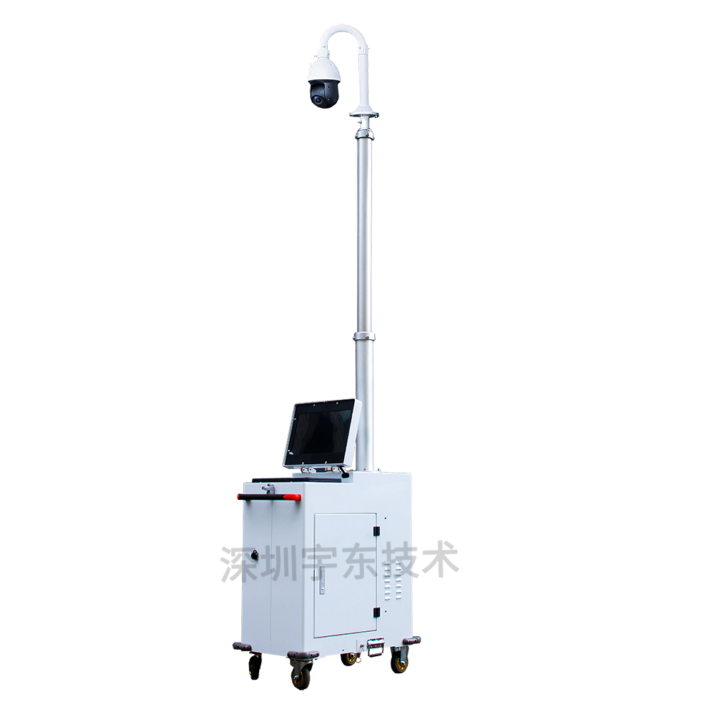 神盾X1主要有攝像機、升降系統、傳輸系統、車體等4部分組成、安裝方便、操作簡單一體化設計,機身靈活,帶有拖動輪胎,便于布防和移動;一體式伸縮支架,方便固定;監控桿體可升降、搭載高清360°旋轉的攝像頭;支持4G無線網絡信號傳輸;自帶揭蓋式顯示屏,方便本地查看;內置1組蓄電池,可續航24H(根據電池大?。?;機身靈活,帶有拖動輪胎,便于布防和移動前端數據移動采集設備。