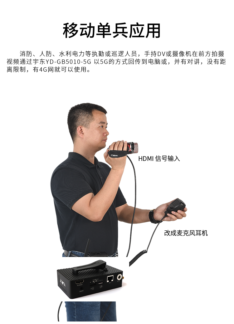 YD-GB5010-5G設備基于先進的 H.265 視頻編碼技術和 5G 無線信道捆綁傳輸技術開發的新一代產品。支持支持 5G、4G 網絡模式,采用 H.265(HEVC)超低碼率,FEC 前向糾錯技術,獨有的 UDP 快速冗余容錯,PID 控制的自適應帶寬編碼和傳輸, 1M 輕松傳輸送 1080P 視頻。
